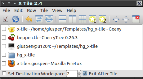 x tile est un petit programme permettant de disposer automatiquement les fenêtres sélectionnées selon un modèle de disposition. Il fonctionne quel que soit le gestionnaire de fenêtres.