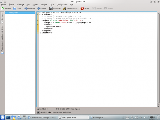Kate est un éditeur de texte très performant pour KDE. Il possède une interface multi-documents, multi-vues et intègre de nombreuses fonctionnalités :